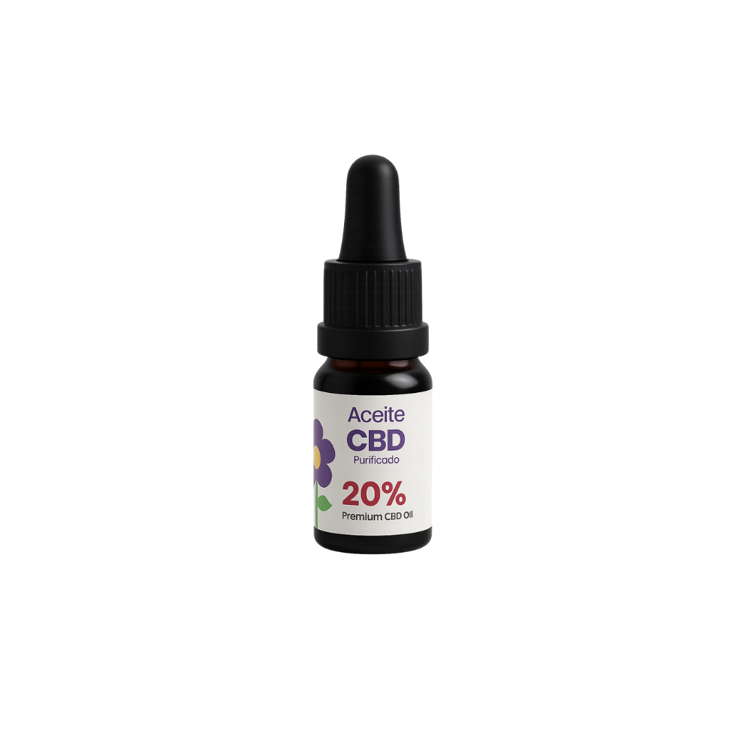 Aceite de espectro completo con 20% de CBD, elaborado mediante extracción con CO₂ supercrítico para mantener terpenos y compuestos naturales de la planta.
